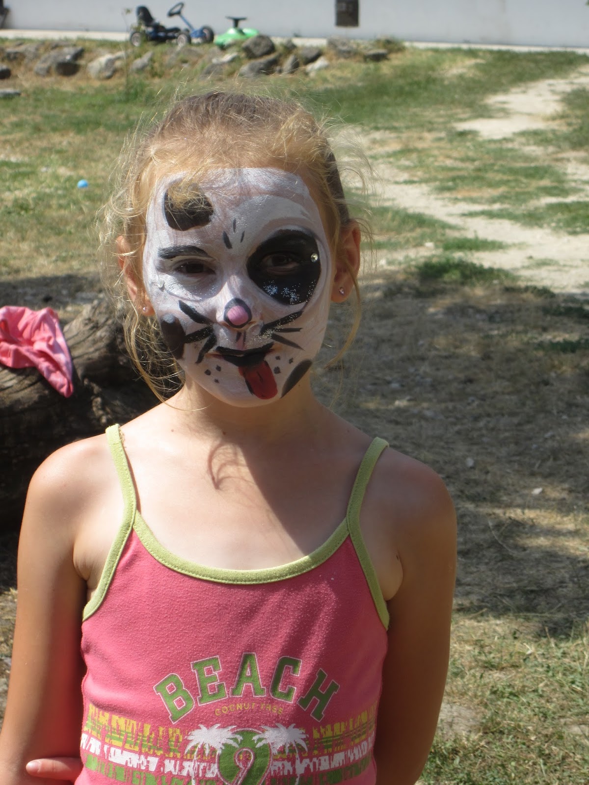A templomi foglalkozás után a nap meglepetése következett. Derecskei Anita felajánlotta, hogy eljön, és mindenkinek fest az arcára valami szépet. Ez a lehetőség persze minden gyereknek nagyon tetszett, és hosszú sorok kezdtek kígyózni a széke előtt. Persze nem volt érdemes sorban állni, így mindenki sorszámot kapott. Anita 11-től 16.30-ig egyfolytában festett a negyven fokban, zajongó, eleven gyerekekkel körülvéve. Köszönjük neki ezt a már-már emberfeletti teljesítményt.